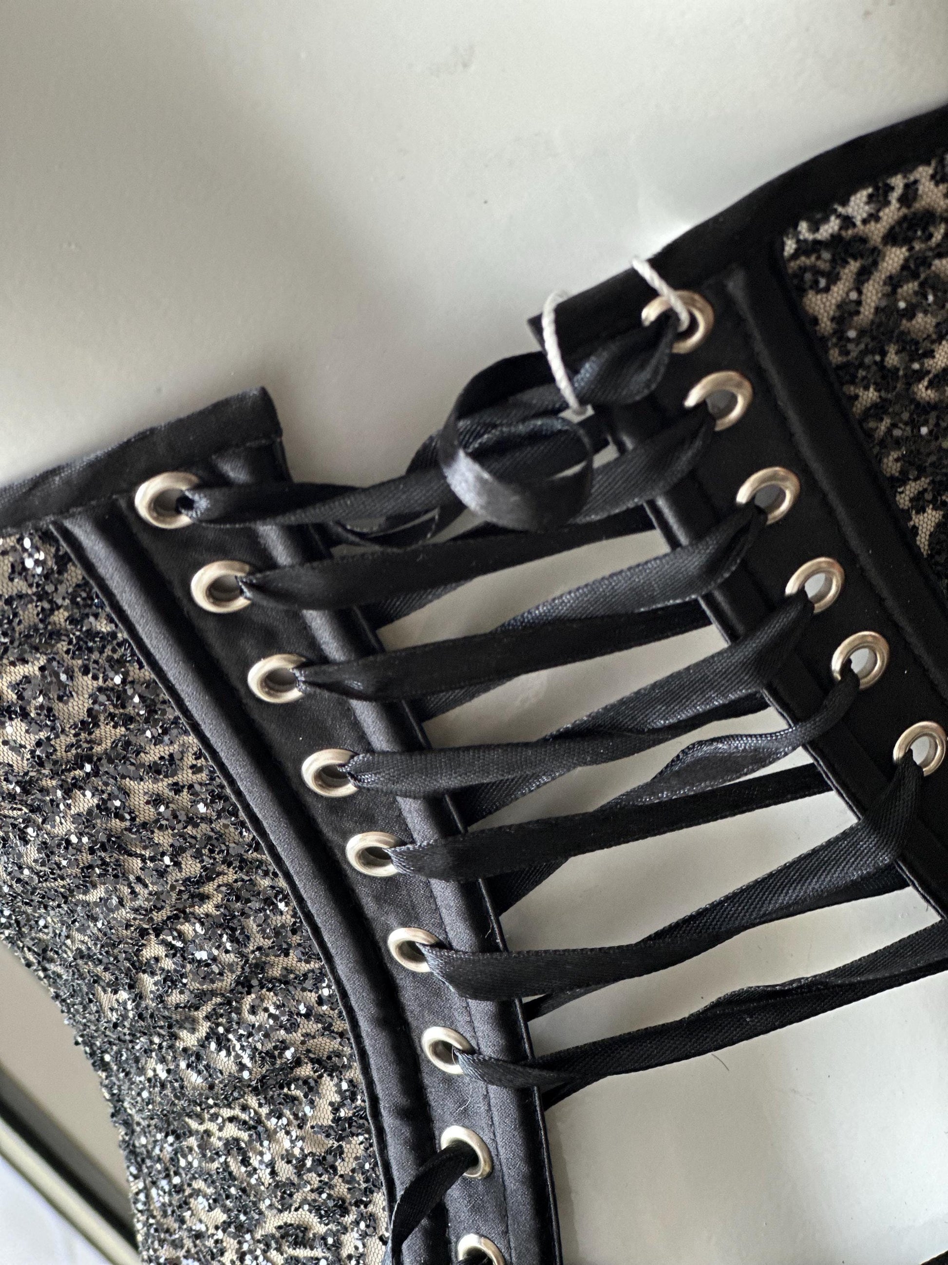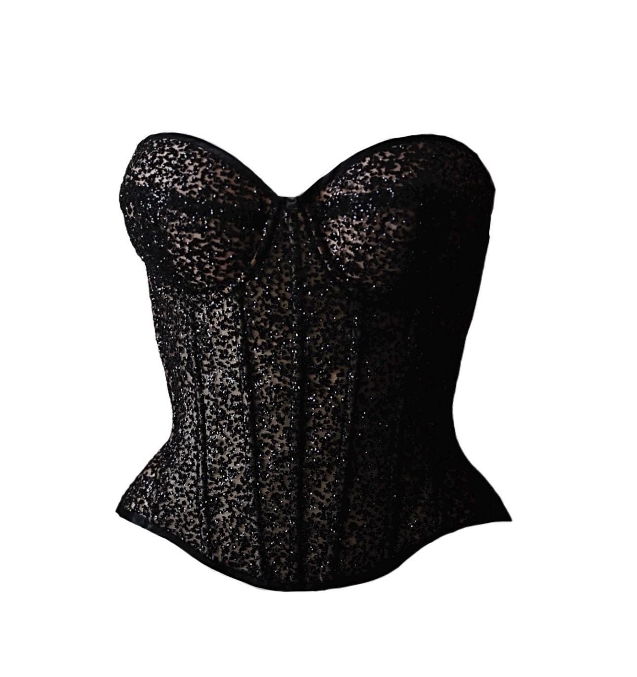 Black shiny beads corset, sparkling princess corset with cups, prom dress, stage performance outfit, custom corset over bust top