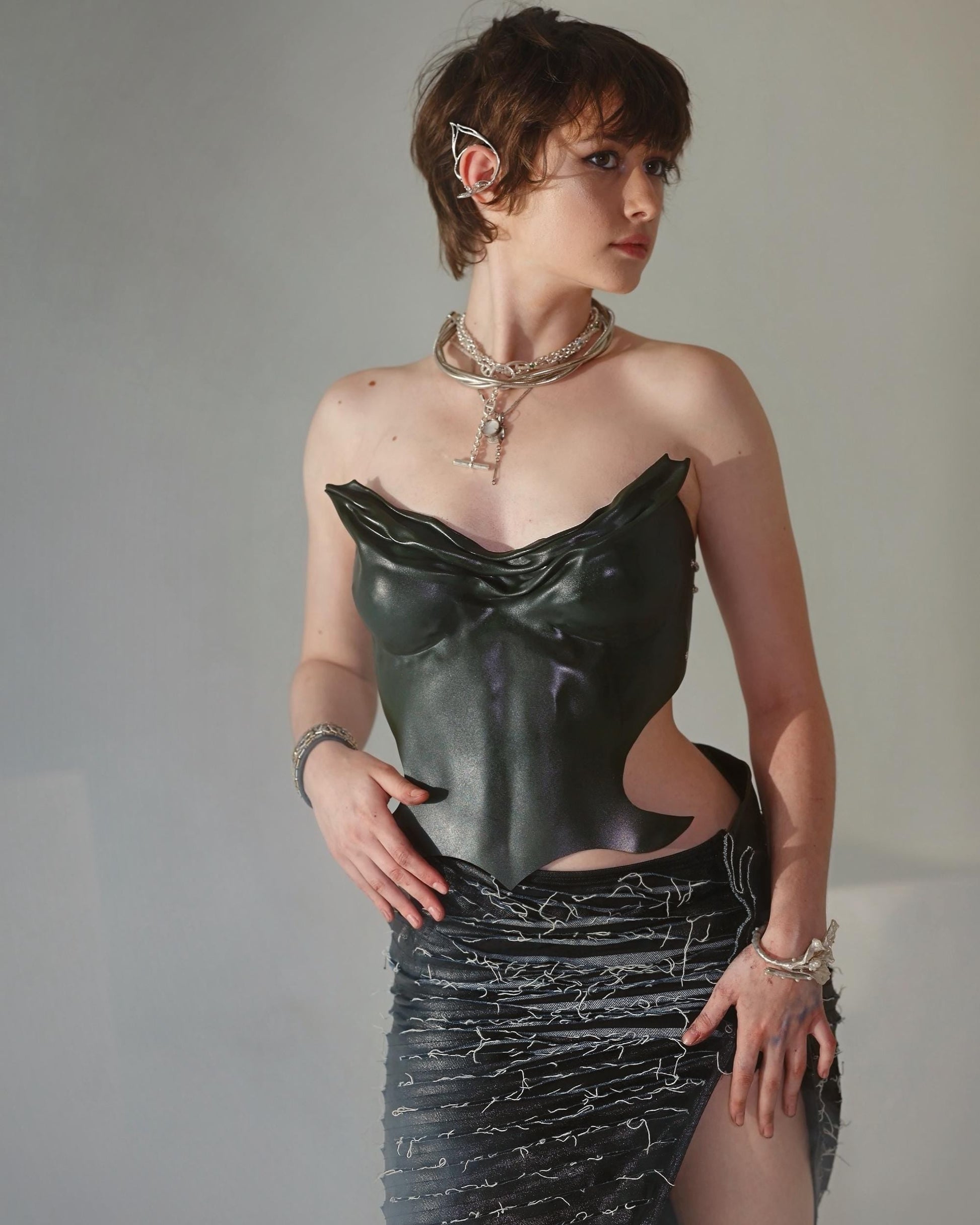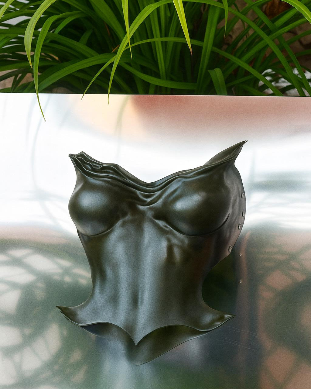 Khaki plastic custom corset bustier top, breastplate armor costumes cosplay futuristic top, handmade army green melted ancient look top.