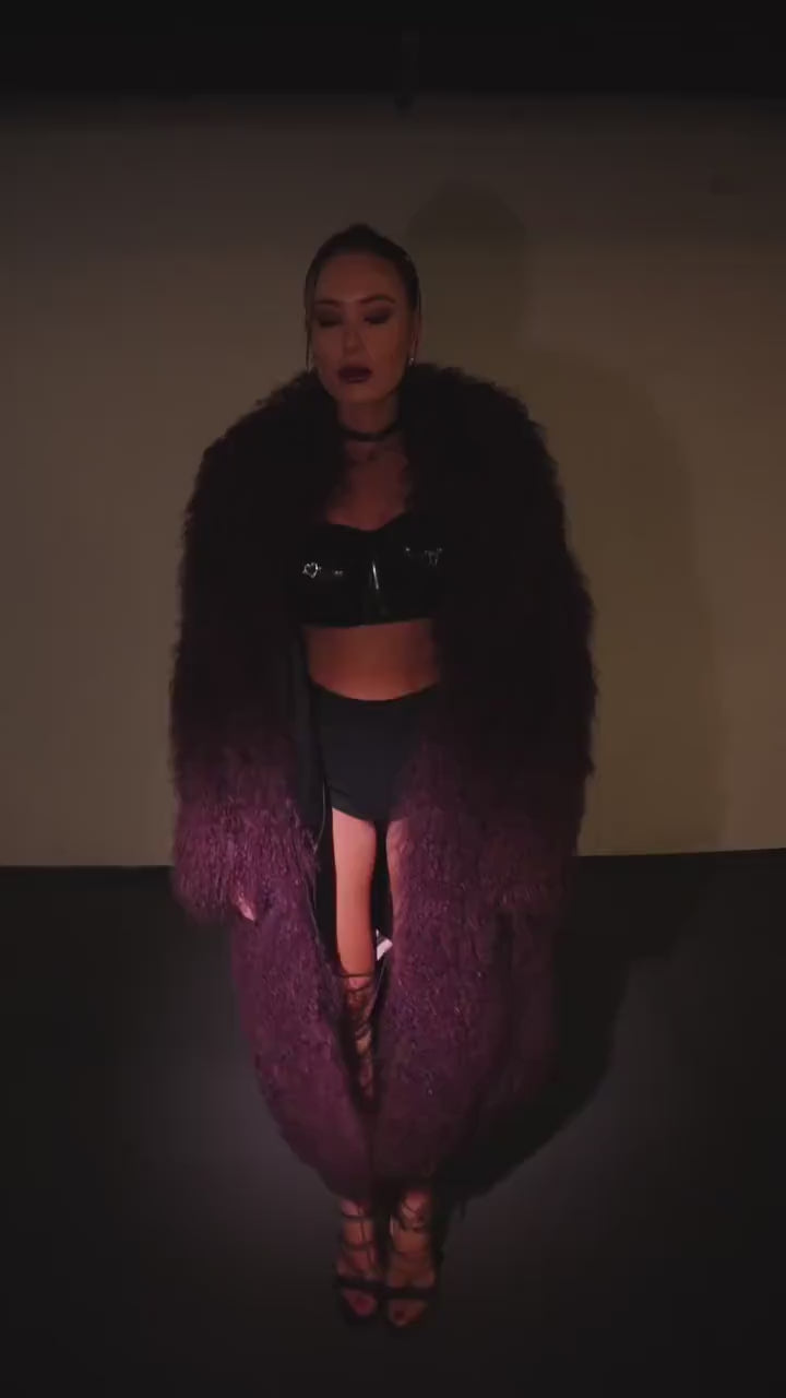 Wrap yourself in ultimate luxury with this genuine Mongolian sheep fur coat. Crafted from real Tibetan sheep wool, this fluffy statement piece delivers unmatched warmth and glamour. Available in burgundy, graphite, light grey, black, white, red, and beige. Choose from short, midi knee-length, or long maxi styles to match your vision. The shaggy texture creates dramatic volume while the oversized silhouette ensures comfort and style. Perfect for winter elegance, luxury events, or making unforgettable entrances. Real fur, real warmth, real impact.