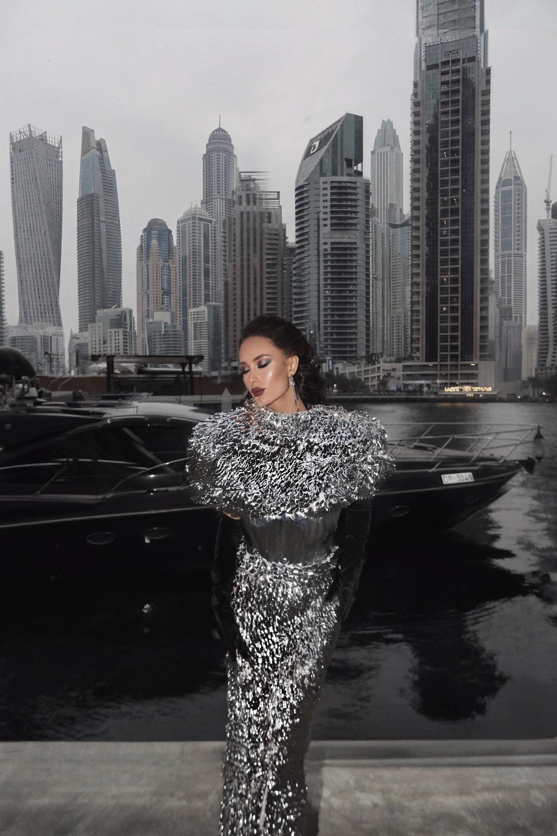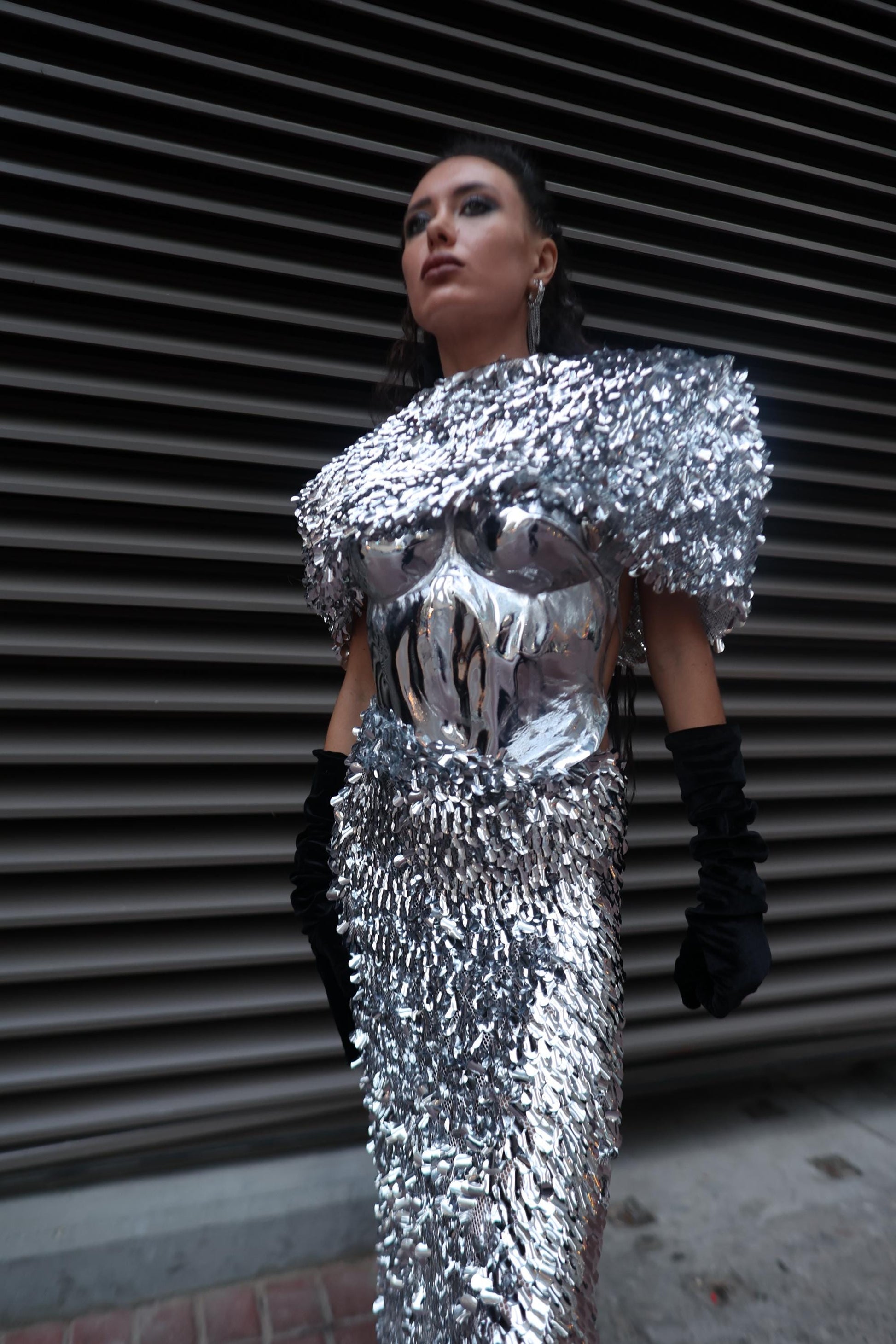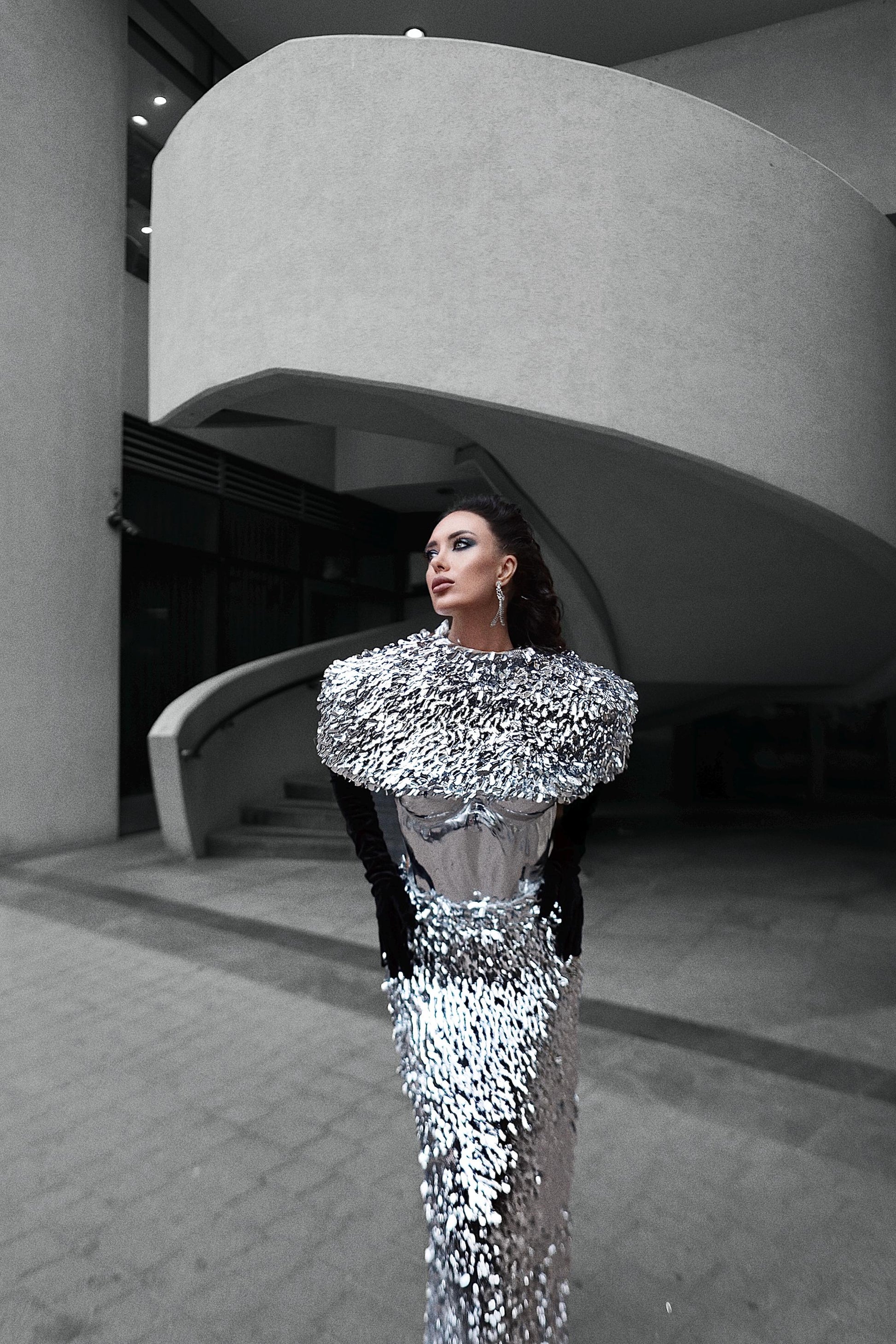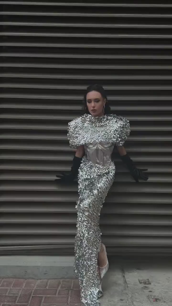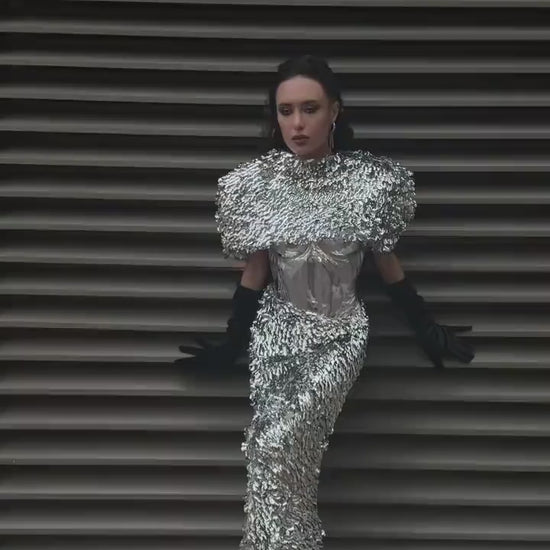 A bold, sculptural sequin set designed to make a statement.